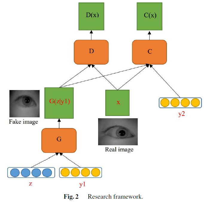 在虹膜影像資料集中,較稀缺的樣本,例如:戴眼鏡的眼睛、瞳孔過大或過小、虹膜位置錯位以及被眼瞼、睫毛或燈光反射遮擋,以及被污染的虹膜影像,這種類別上不平衡的資料集通常會導致分類性能的負面影響。生成對抗網絡 (GAN) 是最有延伸性的網路框架之一,它通過生成器和判別器兩者之間的博弈來學習生成合成的數據。